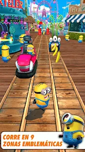• Corre a través de zonas míticas llenas de sorpresas, secretos y obstáculos traidores como el laboratorio de Gru, la zona residencial de Gru, la guarida de El Macho, la playa Minion y Superdiverlandia